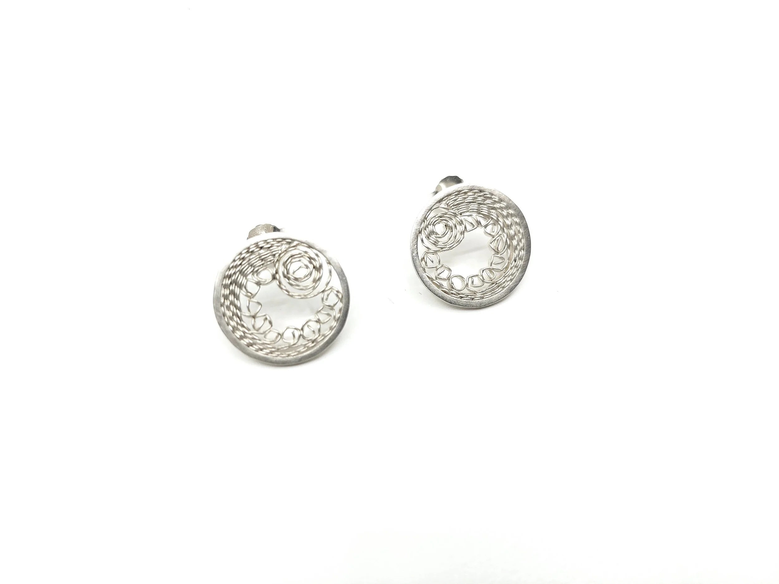 Handcrafted in Argentium silver, the Filigree Spiral Swirl Earrings combine a spiral section with looping filigree details that curl gently around the edge. The circular form creates a sense of rhythm and balance, while the fine wirework brings texture and lightness to the design. Small yet intricate, they offer an elegant touch for both everyday wear and special occasions.