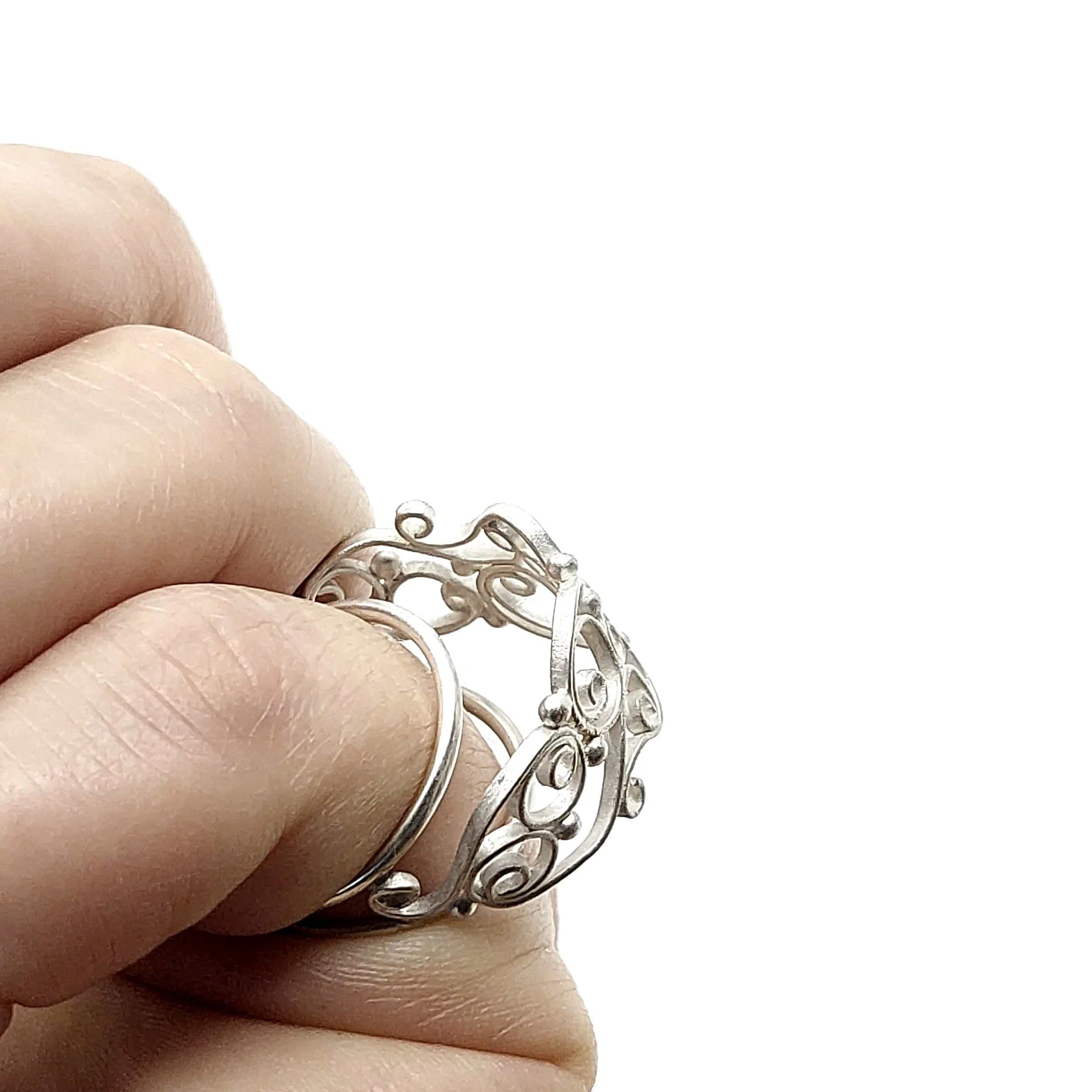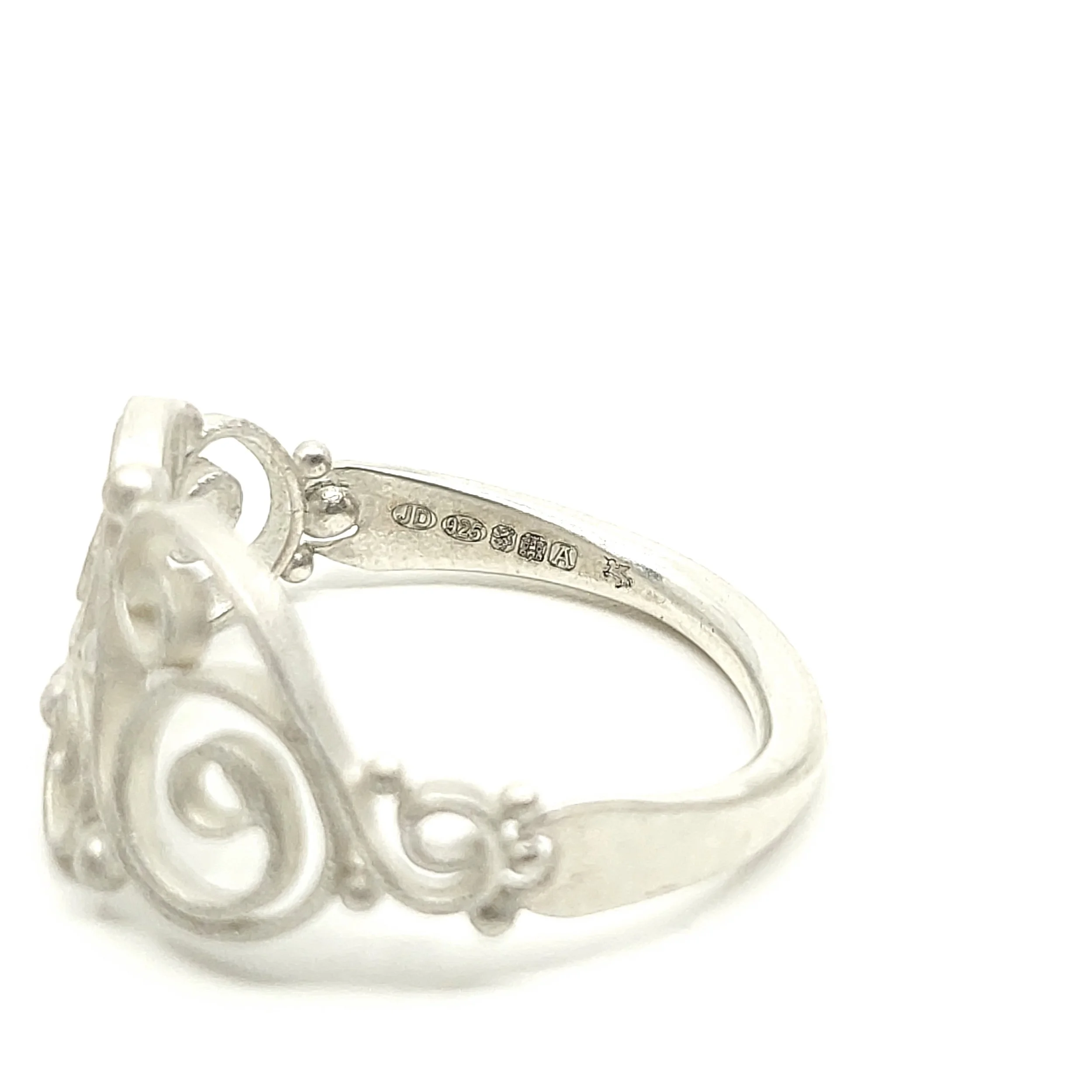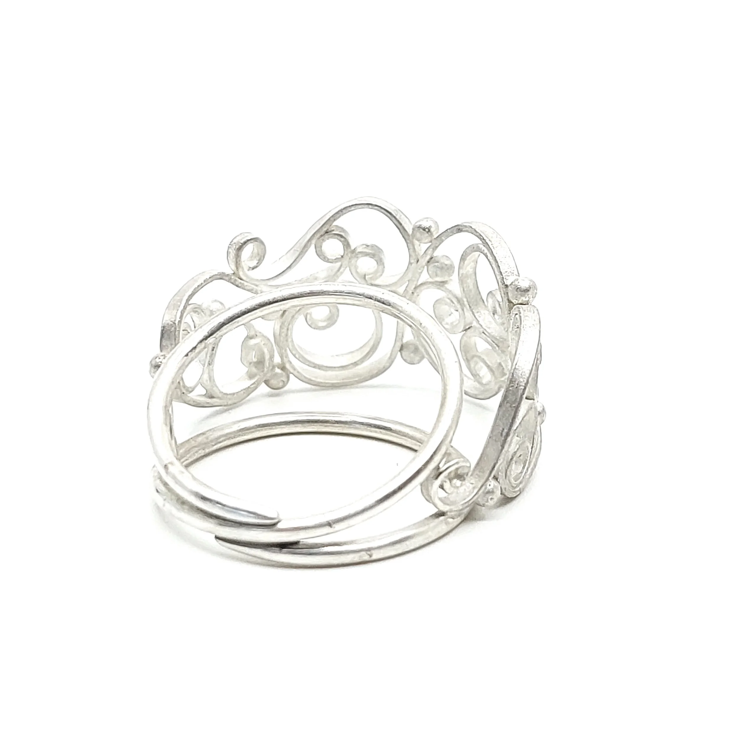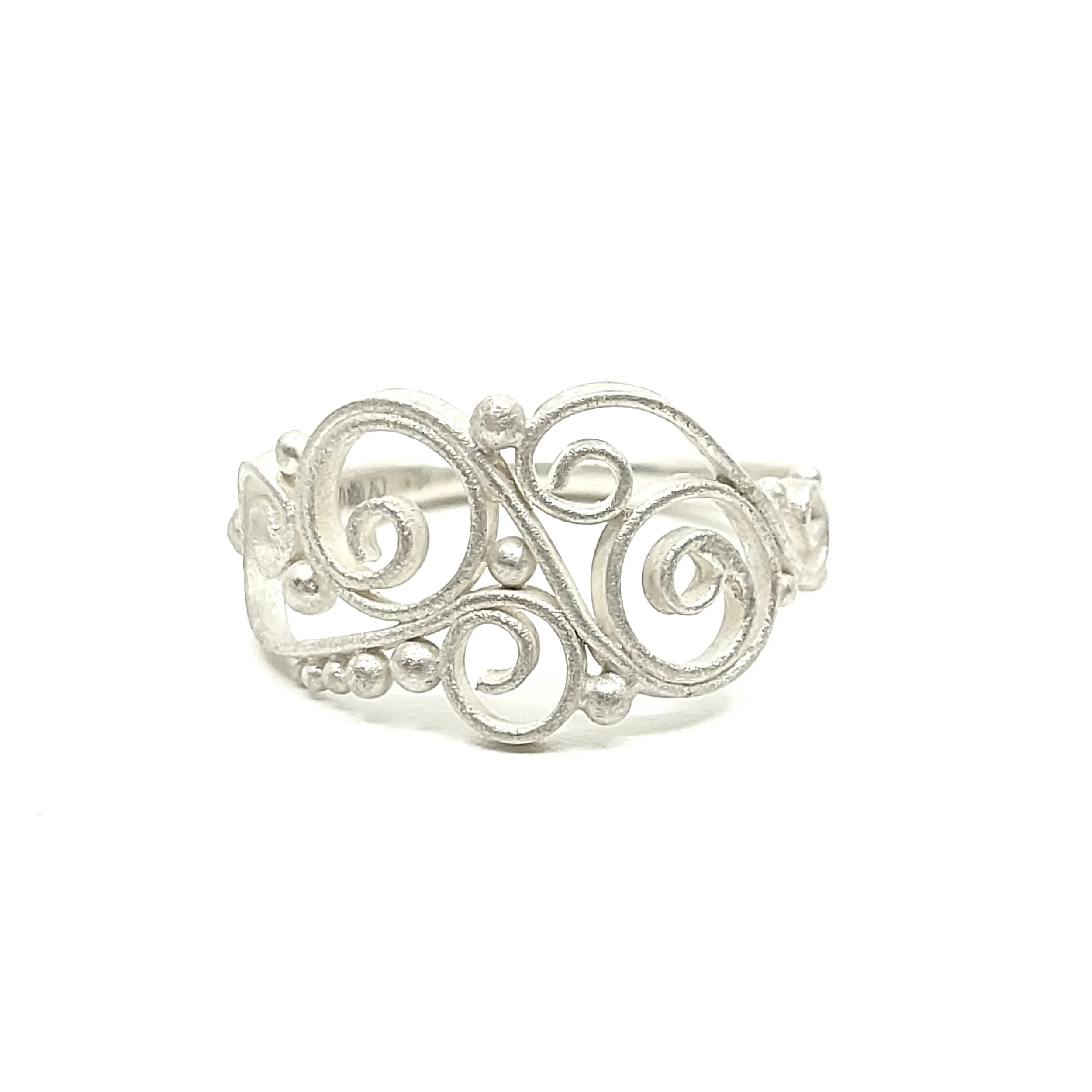• Flat filigree design with graduated granule detail along the outer edge