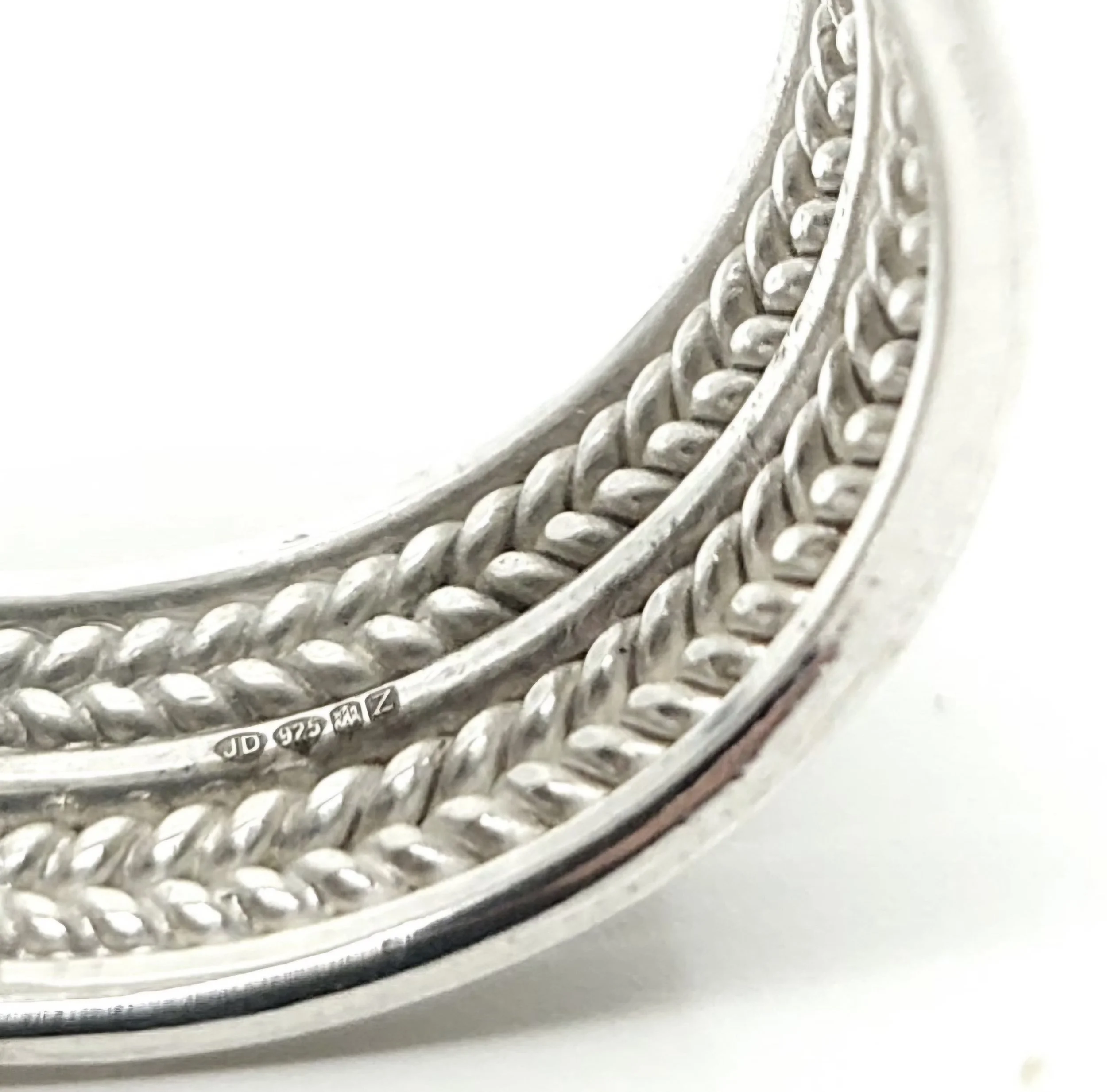 Handcrafted in sterling silver, the Herringbone Wide Band Ring is a bolder interpretation of the traditional herringbone design. Inspired by the twisted wire patterns seen throughout ancient Egyptian jewellery, this wider version uses heavier wire to create a ring with more presence while keeping the refined detailing of the original design.